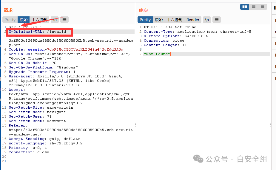 后面回显包中,返回未找到,证明我们的添加的头的确被读取了,后端进行了处理和响应。
