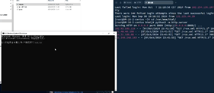 </screens>我这里首先在我服务器中开启python的远程下载服务,配置8000端口,提供xml进行远程执行,执行命令为访问我服务器的8888端口,同时我开始python远程8888端口来监测命令是否执行。