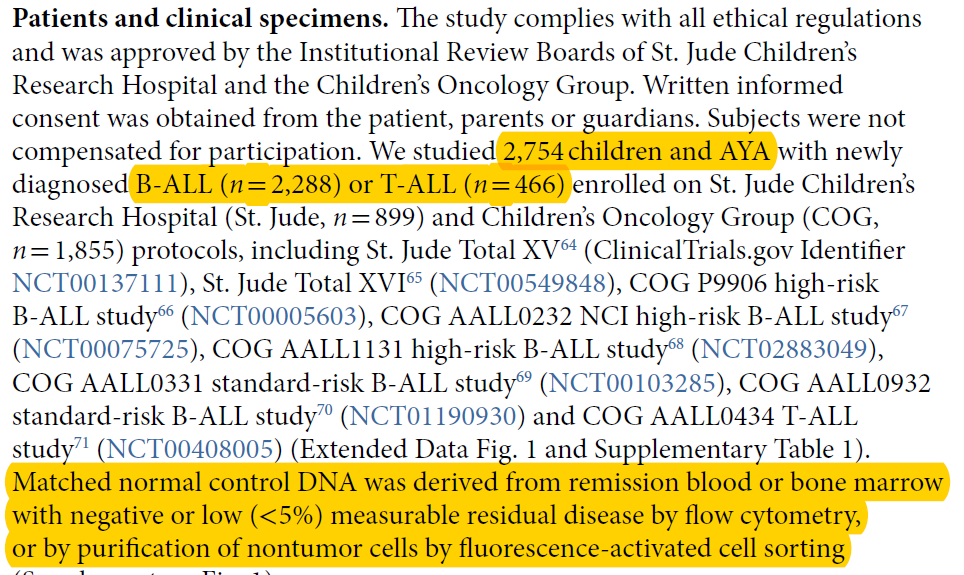 tcga计划有很多实体肿瘤样品,它们去肿瘤组织的同时都取了对应病人的血液样品, 这样的话就可以比较准确的找每个病人的somatic突变。但是血液肿瘤本身的癌组织就是血液,该如何去找这个病人的正常组织呢?