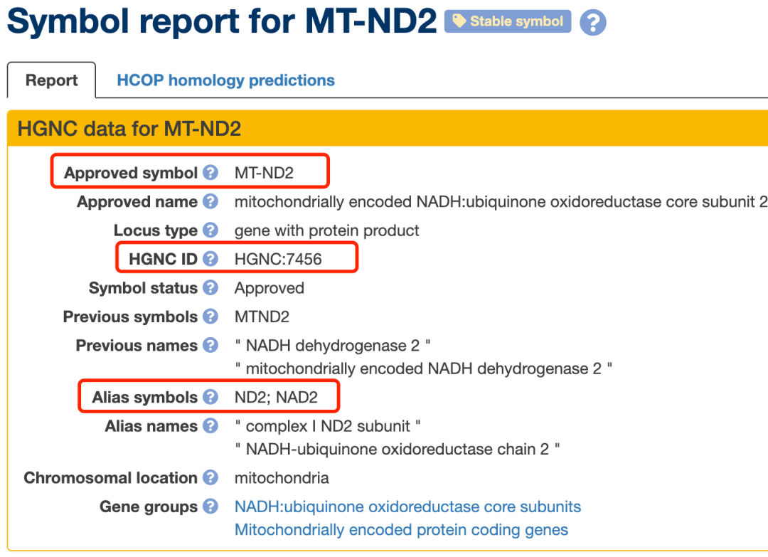 如果我们是基于 OrgDb = "org.Hs.eg.db" 进行id转换,那么它就没办法成功, 因为 目前它的官方symbol应该是MT-ND2,但是 "org.Hs.eg.db" 记录的是ND2,就冲突了。