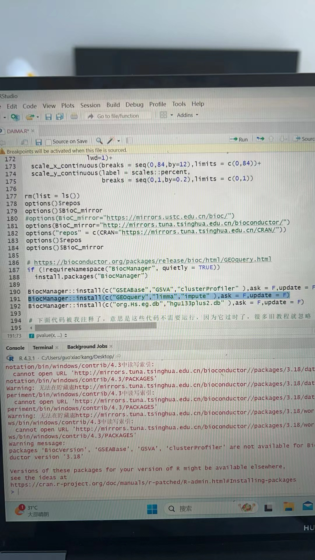错误于library(pheatmap): 不存在叫‘pheatmap’这个名称的程序包