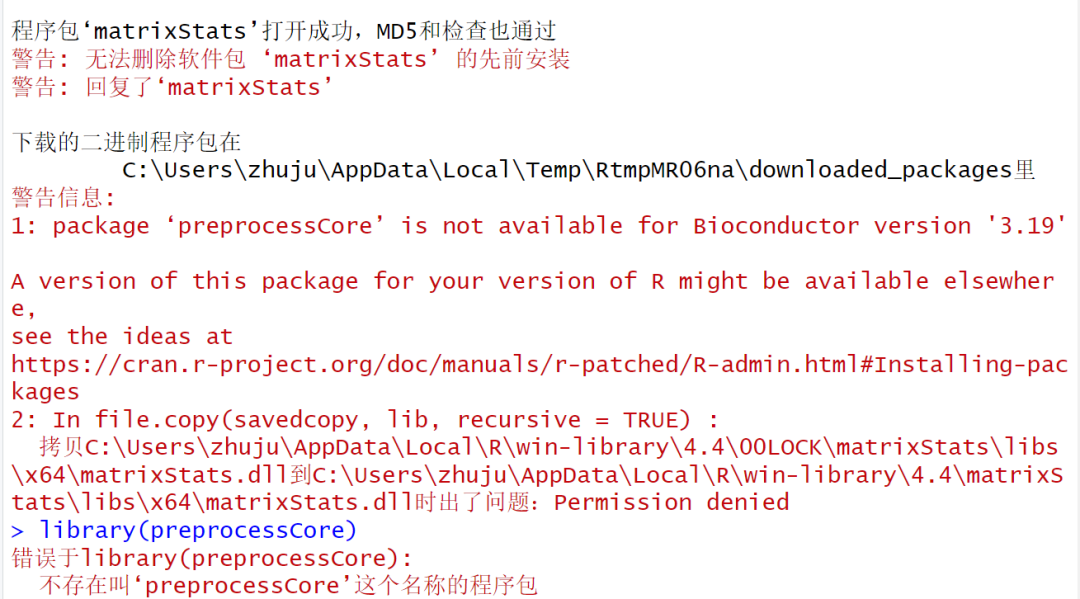 试试安装preprocessCore BiocManager::install("preprocessCore")