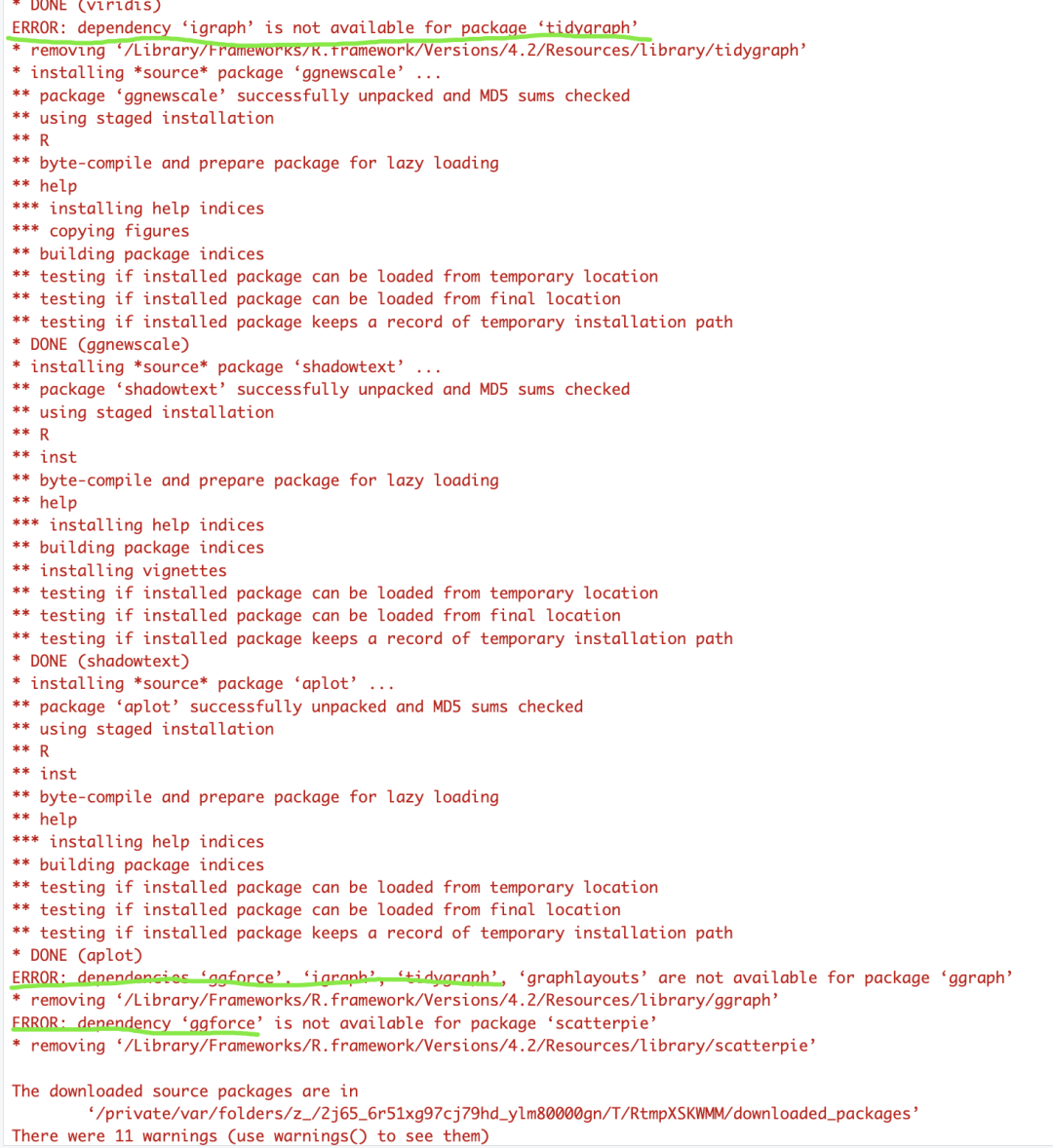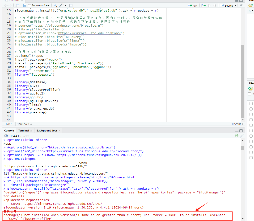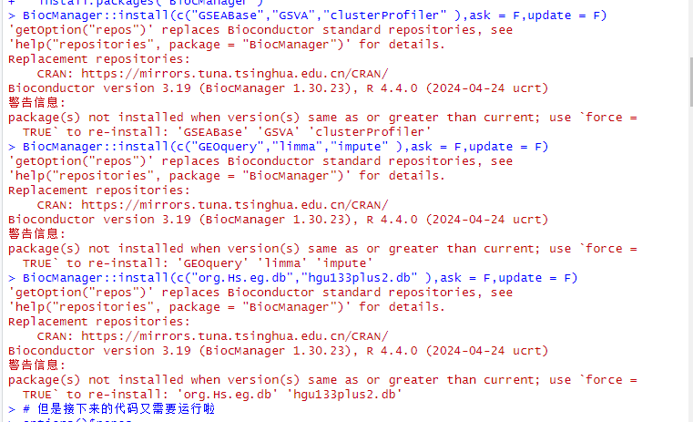提示信息说这些R包你已经安装好了,不必重复安装。library 之后,提示信息里没关键词 error 就是成功了。