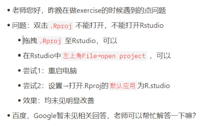 经排查:Rstudio和working direction都放在桌面上以后,可以双击打开.Rproj