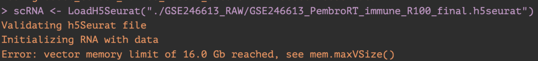 数据比较大,电脑内存有限,试试把一些不需要用到的程序先关掉,再重新读取。通常来说,8GB内存对于生信分析不太够用。