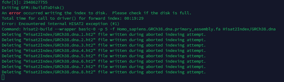 大概率是空间不够哈,学会构建索引这个操作就行,服务器有构建好的,不用重复运行。