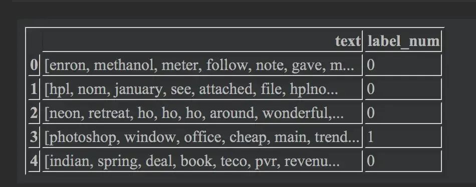 new_data['text'] = new_data['text'].apply(text_process)现在我们得到了一个比较干净的数据集: