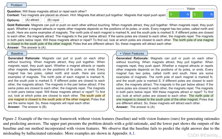 一个示例如图1所示。 通常,有两种方法可以引发多模式CoT推理: (i)提示LLM (ii)微调小模型