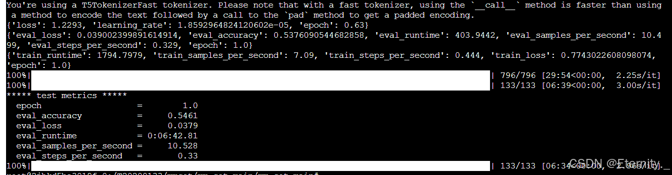 --output_dir experiments训练一个epoch大约30min左右,评估+预测得几h+
