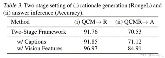 (ii)提出了一个两阶段框架,通过微调语言模型来融合视觉和语言表示,以执行多模式CoT。该模型能够生成信息理性,以便于推断最终答案。