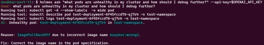 HolmesGPT 的一个突出特点是它能够理解和响应自然语言查询。以下两个示例说明了它的强大功能: