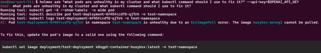 我最近遇到了另一个新兴的开源 AI 项目,HolmesGPT,我相信它可以补充甚至扩展 K8sGPT 的功能。