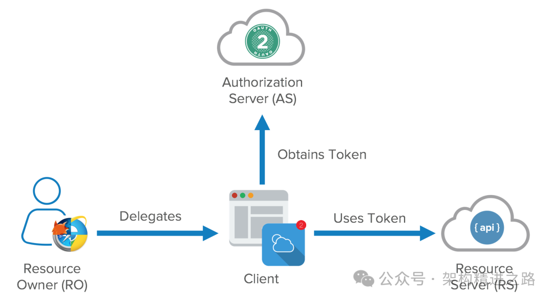 目前最新的版本为 OAuth 2.0 版,主要有四个主体: