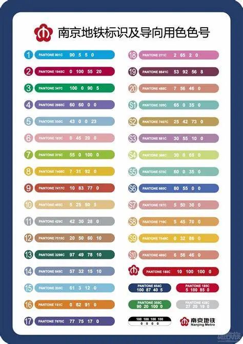 虽然南京地铁、上海地铁等都普遍采用了颜色方案,但是动辄几十种颜色让它只有换乘站中的线路指示的意义。特别是还要同步发布它的 CMYK 色卡时,它就已经不再适合作为“线路编码”规则。