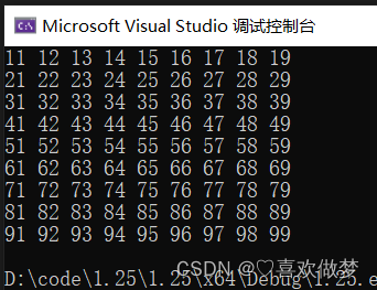 从图中我们可以做到他是先循环外层i=1,随后进入内层循环遍历j从1-9