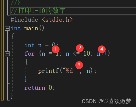 n=1也就是初始化部分只执行一次,之后就表达式2、循环语句、表达式3在循环语句中执行直到条件判断不符合