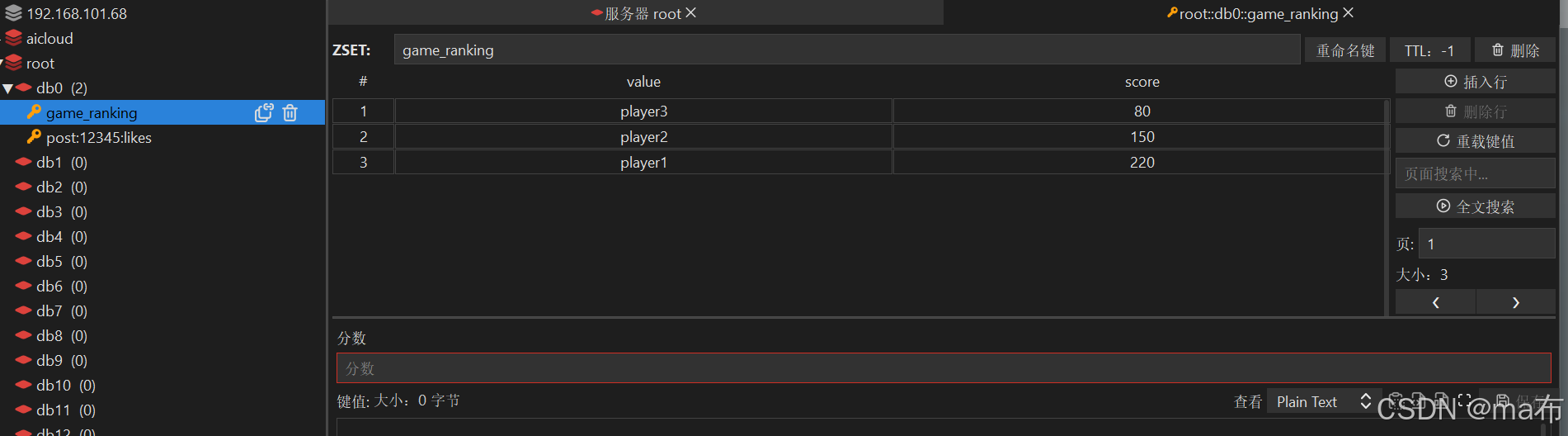 ZADD命令。这个命令会将指定的成员(玩家 ID)及其对应的分数插入到有序集合中,同时按照分数对整个集合进行重新排序(如果有需要),以确保集合始终保持有序状态。ZADD game_ranking 120 player4,就是将玩家 4(ID 为 “player4”)及其得分 120 添加到 “game_ranking” 这个有序集合中,集合会自动根据新插入的元素调整排序顺序。ZRANGE game_ranking 0 2会返回 “game_ranking” 有序集合中排名前 3(索引 0 到 2)的玩家 ID,结合后续使用ZSCORE命令获取对应分数,就能完整呈现排行榜前几名的情况。ZINCRBY命令。这个命令会按照指定的增量去改变指定成员(玩家 ID)的分数,然后同样会根据更新后的分数对有序集合进行重新排序,确保排行榜始终反映最新的得分情况。ZINCRBY game_ranking 20 player1后,玩家 1 的得分变为 120,并且 “game_ranking” 有序集合会自动调整排序,将玩家 1 放在新的合适位置上。package com.lcyy;