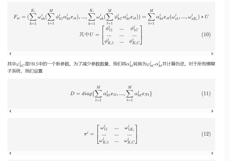 模糊广义学习系统(FBLS)基于随机向量功能链接神经网络和伪逆理论的架构。该设计使系统能够快速且渐进地学习,并且在无需重新训练的情况下重新建模。FBLS模型如图3所示,包含输入层、模糊子系统层、增强节点复合层和输出层。在复合层中,使用模糊规则从输入数据生成多个模糊子系统。这些模糊子系统随后被增强为增强节点,每个节点具有不同的随机权重。通过将所有特征和增强节点连接到输出层来计算输出。