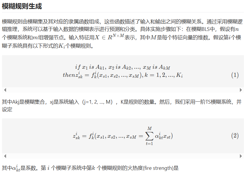 模糊广义学习系统的主要概念是将输入数据映射到一组模糊规则中,然后利用BLS算法学习和优化这些规则的权重和参数。这些模糊规则由模糊集及其对应的隶属函数组成,这些函数描述了输入和输出之间的模糊关系。通过采用模糊逻辑推理,系统可以基于输入数据的模糊表示进行预测和分类。