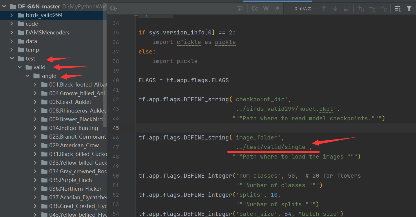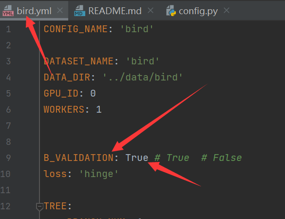 根据DF-GAN的官方文档,首先将bird.yml中的B_VALIDATION改为True: