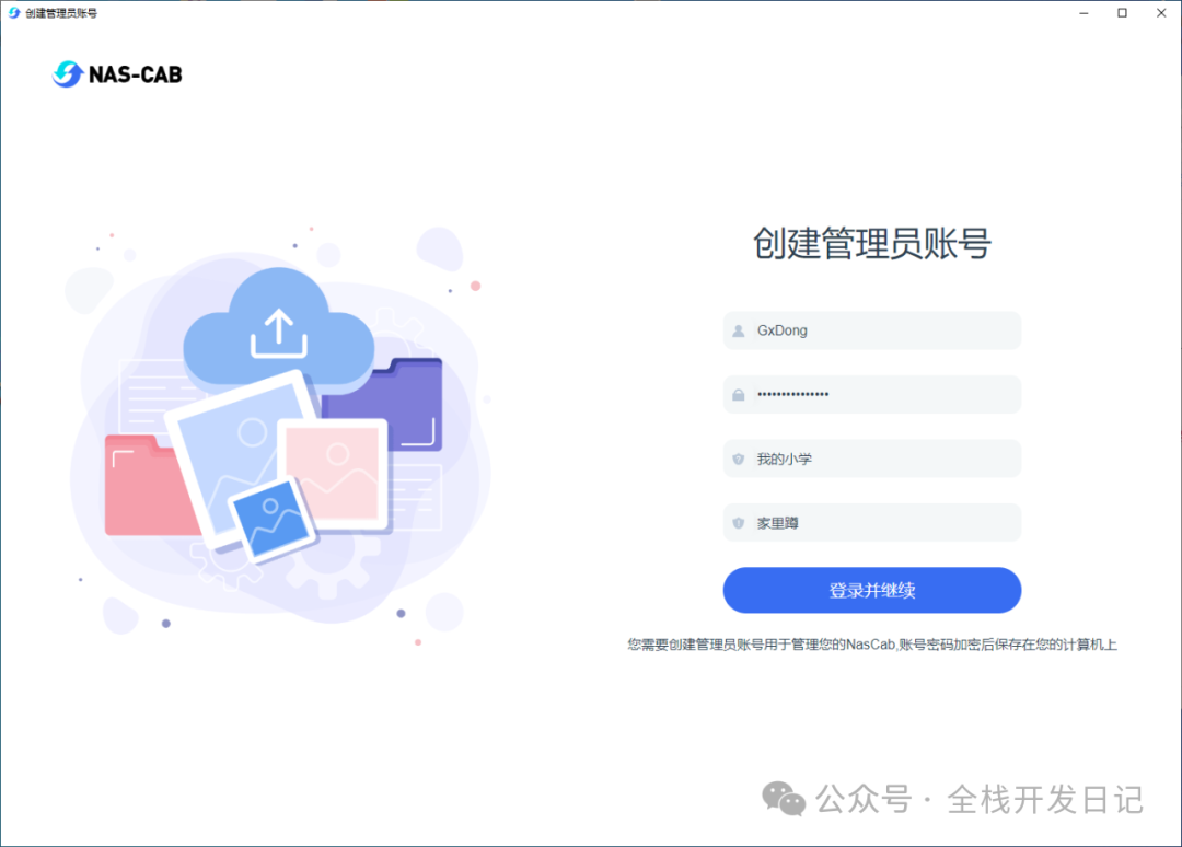 • • 完成之后会自动打开操作界面,设置管理员账户