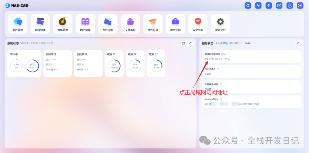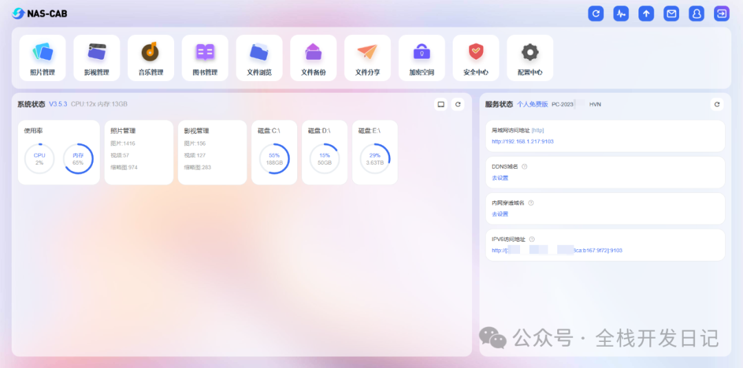 • • 文件分享‌:通过专属域名,用户可以在世界任何角落访问Nascab,无需公网IP和配置路由器‌;(此功能收费)