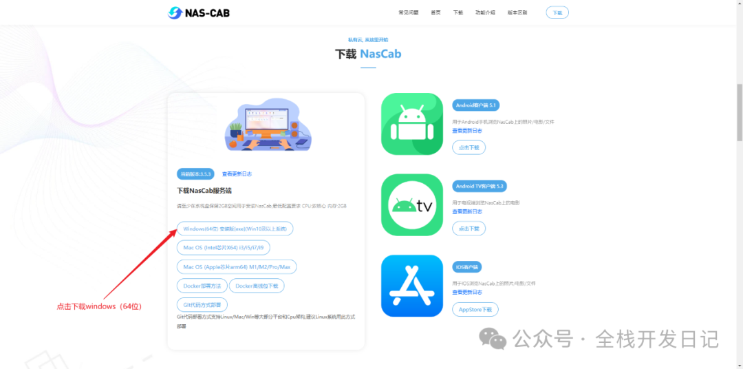 • • 点击windows(64位)安装包 (本次只讲解讲解windows作为服务端的步骤)