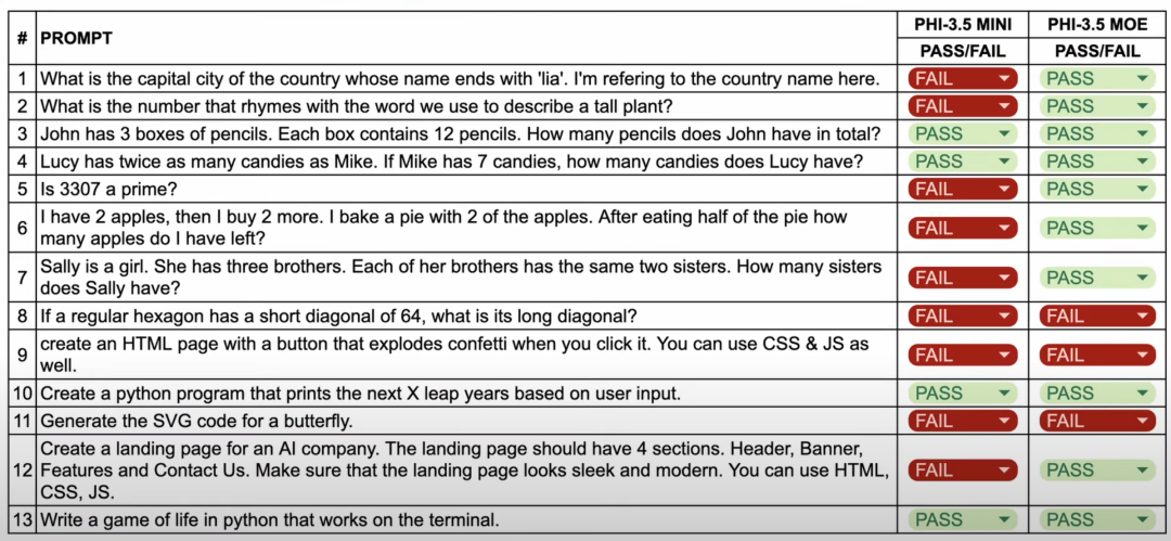 对于文本模型,我将尝试这13个问题,我不会使用这些文本问题测试视觉模型,因为它是带有视觉功能的Mini模型,而且我也找不到任何好的演示网站来试用它,而且它在Llama上也不可用。