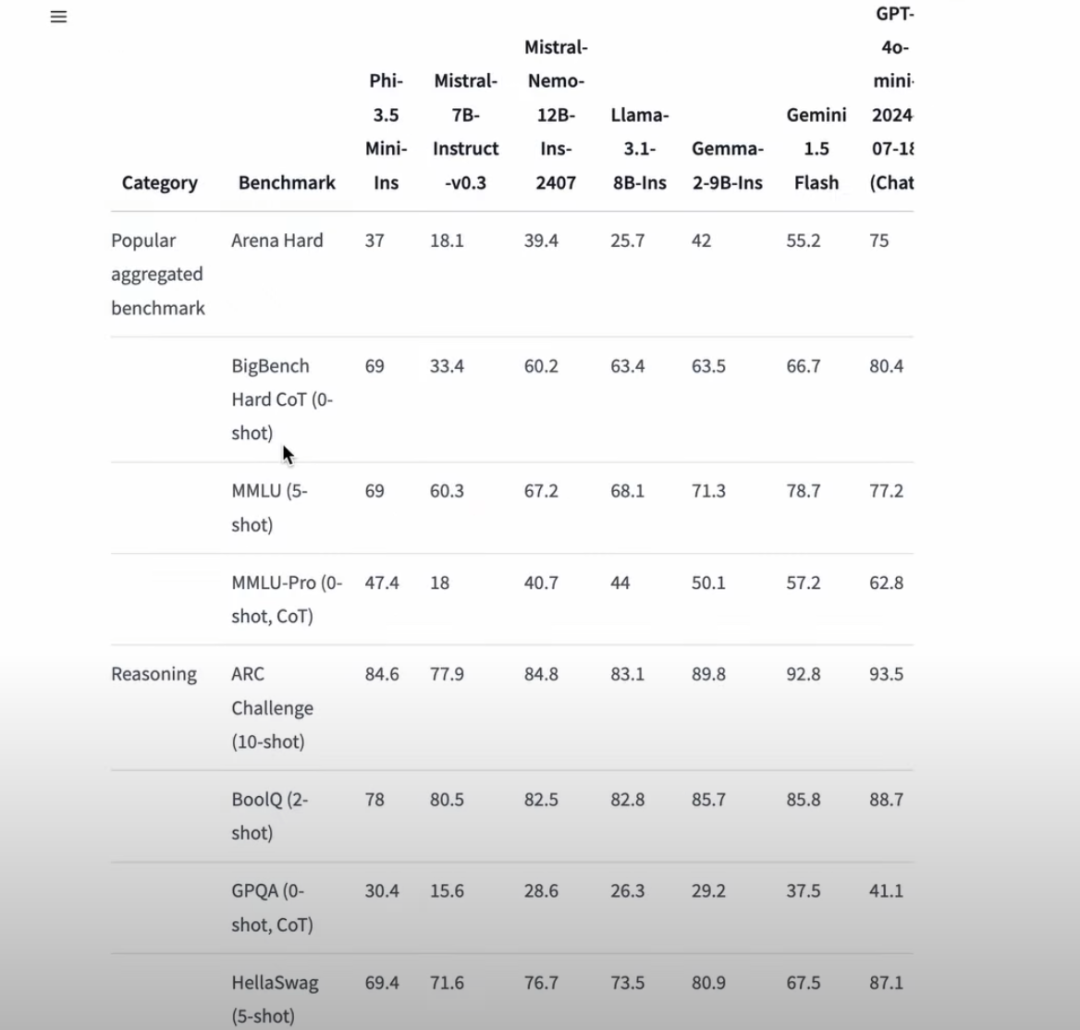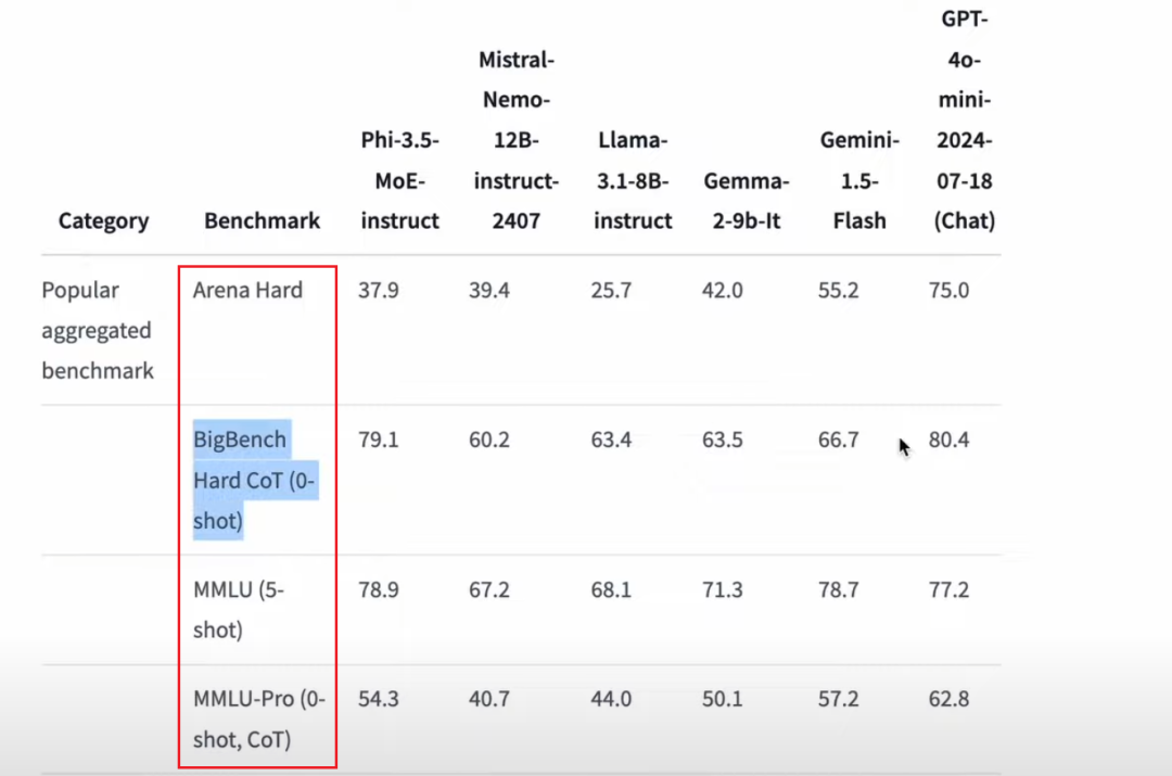 然而在Big Bench Hard测试中,它以较大优势击败了其他所有模型,包括Gemini 1.5 Flash,并且非常接近GPT-4 Omini的表现,这相当不错。
