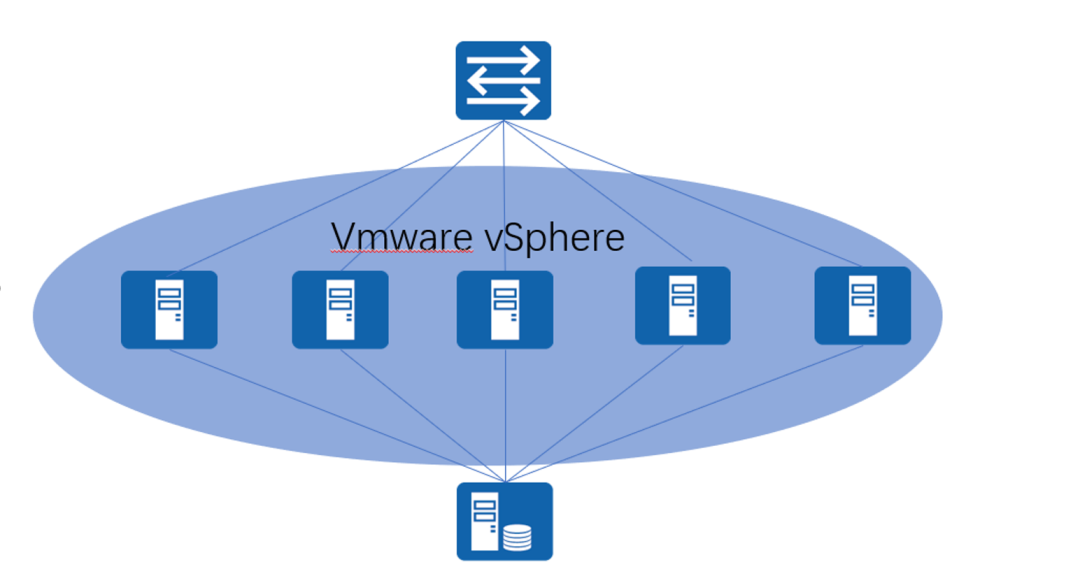 XXX项目因发展需要及数字化机房标准建设要求。现新建5台华为2288H V5服务器用于vSphere虚拟化平台部署,1台OceanStor 5110v5为虚拟化平台提供后端存储资源。局点组网图如下所示: