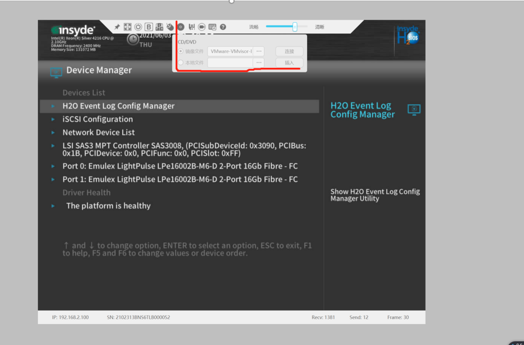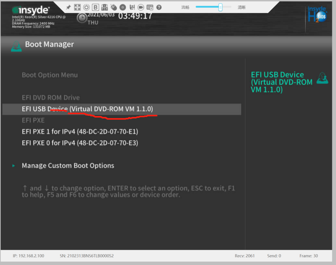 连接成功后选择自己挂载好的镜像文件,回车进入