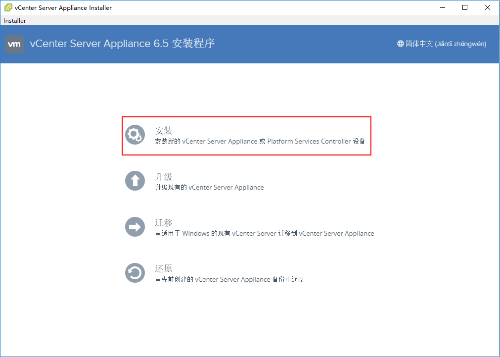 导航到 vcsa-ui-installer\win32 文件夹,执行Install.exe
