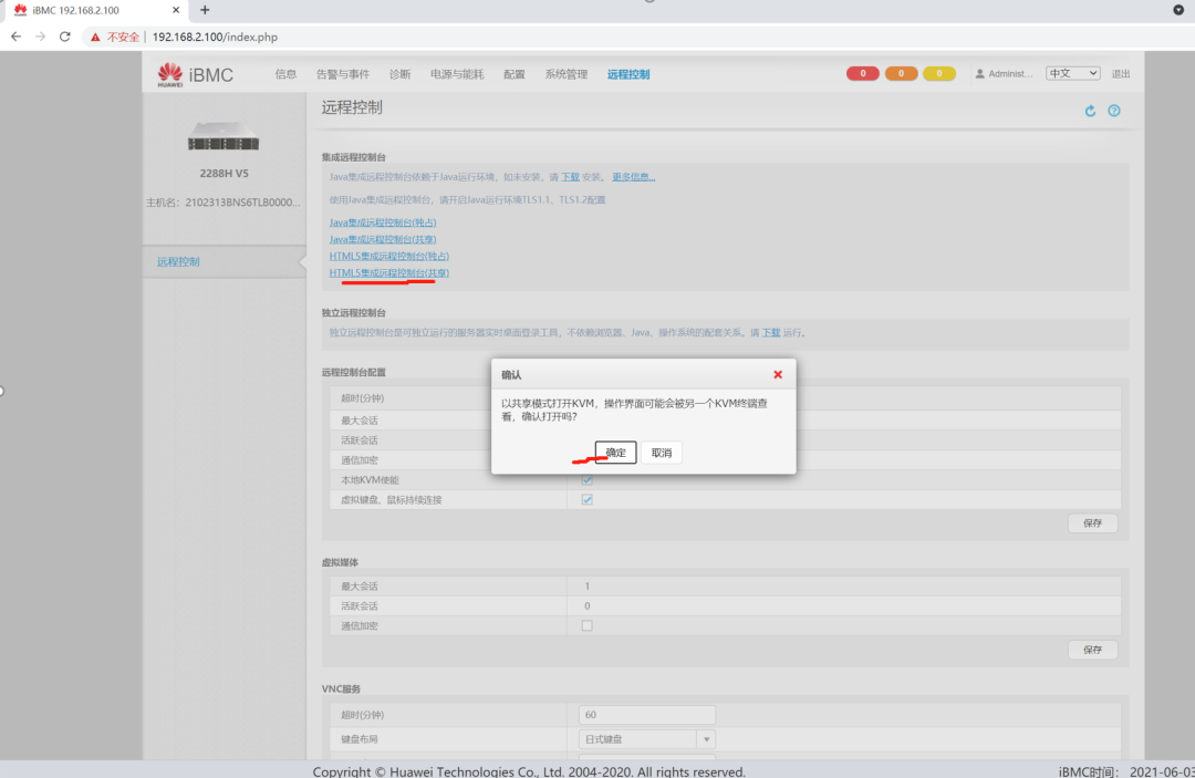 点远程控制,然后点HTML5集成远程控制台,进入KVM
