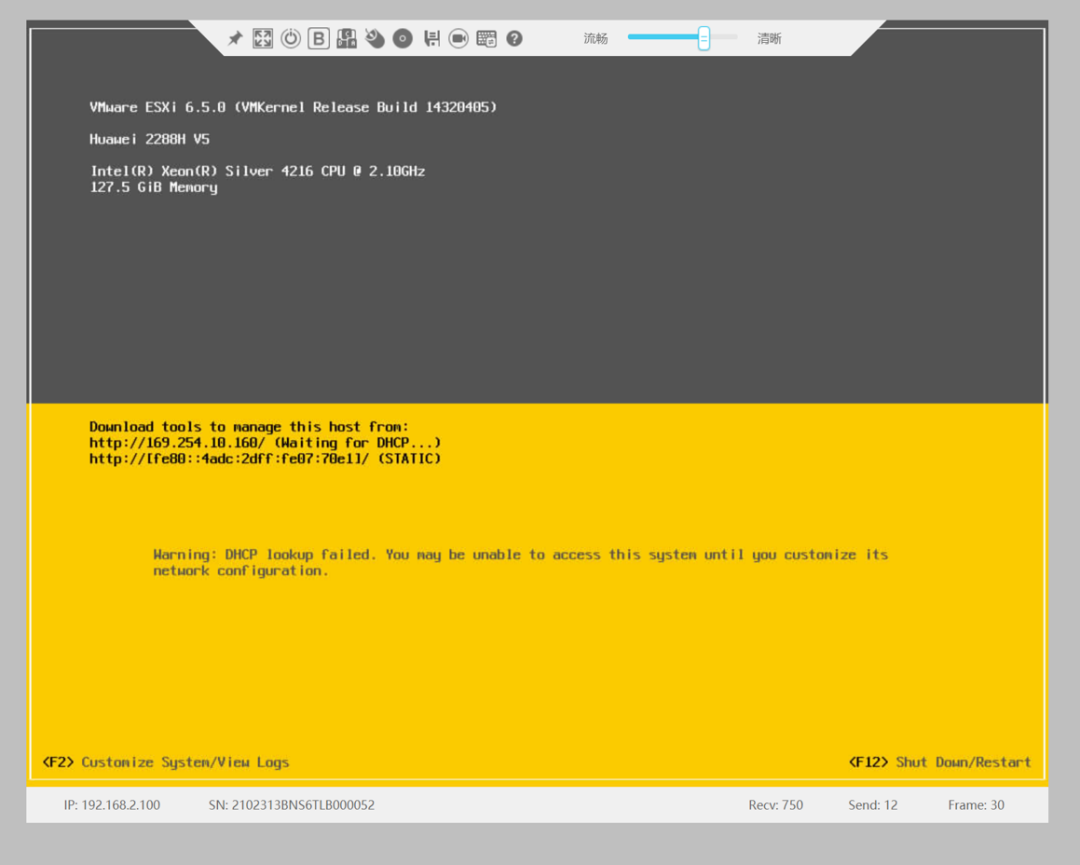 2288H V5/esxi04 | 1*(Intel(R) Xeon(R) Sliver 4216 CPU@2.10GHz) | 4*32G内存 |