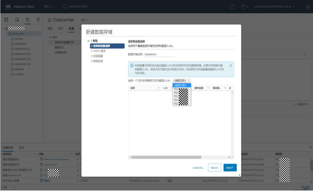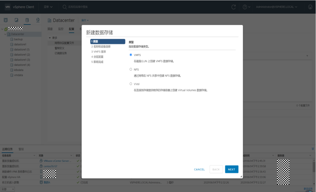 FC SAN或者IP SAN 块数据业务选择VMFS