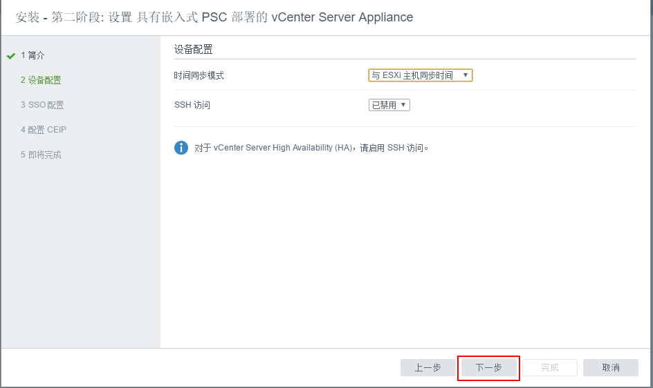 如下方的提示如果配置VCSA HA模式的需要开启SSH访问。