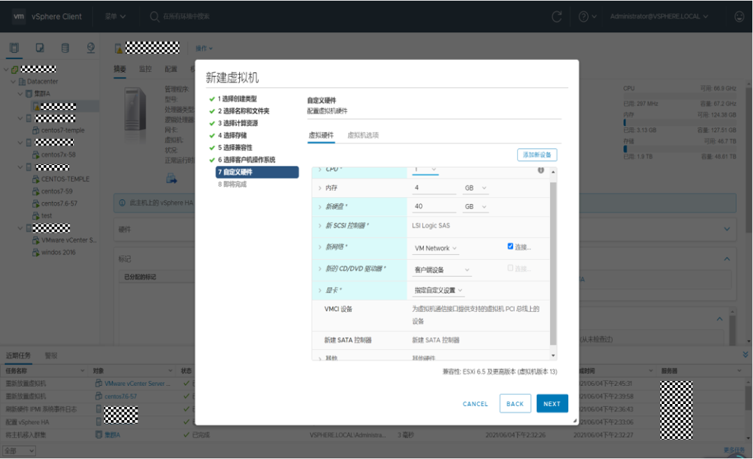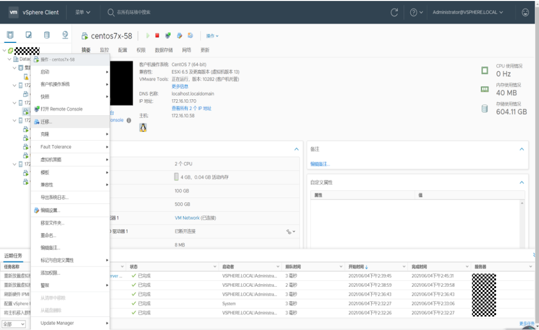 2288H V5/esxi01 | 2*(Intel(R) Xeon(R) Sliver 4216 CPU@2.10GHz) | 4*32G内存 |