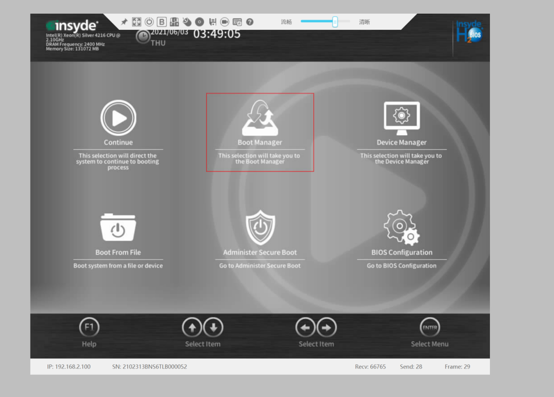然后等待画面出来按Delete键,输默认密码*****(password)9000进入界面,点 BootManager