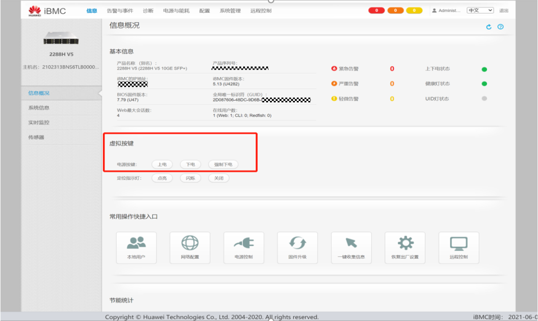 1.在管理页面中关机,服务器进入web页面后即可看到