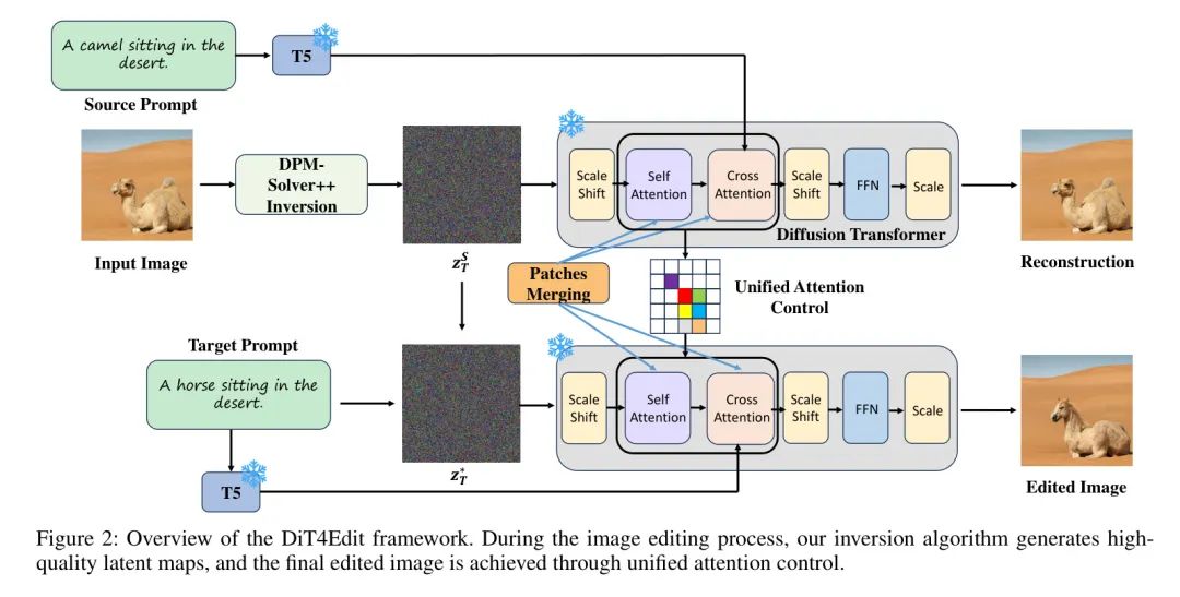 其中 。在 DiT4Edit 中,作者使用 DPM-Solver++ 反向策略从输入图像 获得编辑任务的反向潜在。