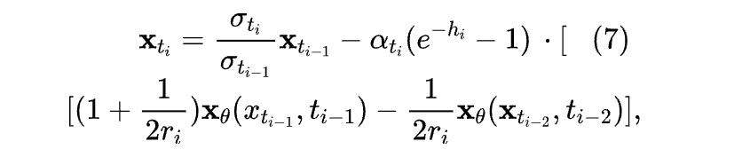 在实际应用中,通常设置 ,可以实现快速的推理并最小化离散化误差。这种名为DPM-Solver++(2M)[17]的DPM求解器: