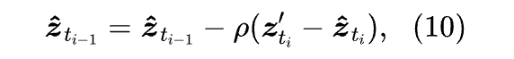其中, 是去噪模型, 是通过DDIM反向估算得到的值, 是通过DDIM反向估算得到的()的值,.