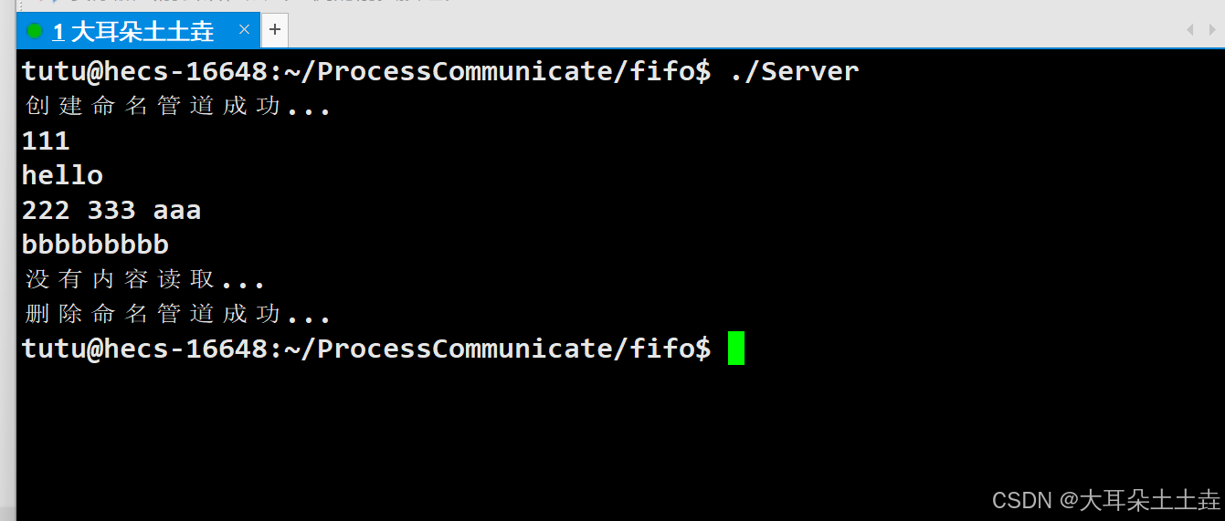 cat < /path/to/your/fifo同样地,如果此时没有进程向命名管道写入数据,那么执行读操作的命令也会处于等待状态。