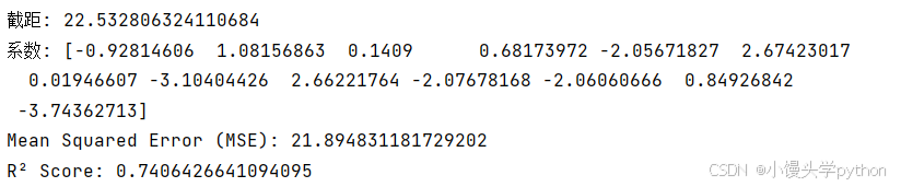 通过线性回归模型,我们成功地预测了波士顿的房价,并使用MSE和R²评分对模型进行了评估。虽然线性回归是一个基础模型,但它在许多实际问题中都能提供一个不错的基准。如果感兴趣的小伙伴可以自行尝试其他的数据集进行数据分析~