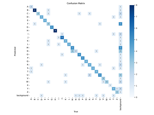 最终模型在随机手语图像和视频上进行了测试,以观察其在现实世界中的表现。结果显示了在实时检测不同ASL标志方面的有希望的结果,证明了YOLO11架构在处理复杂、基于手势的任务方面的有效性。