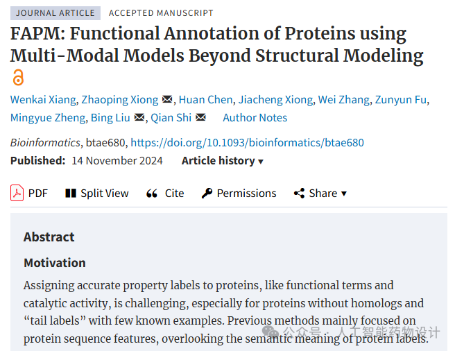 相关研究成果已在Bioinformatics期刊上发表,题为“FAPM: Functional Annotation of Proteins using Multi-Modal Models Beyond Structural Modeling”。