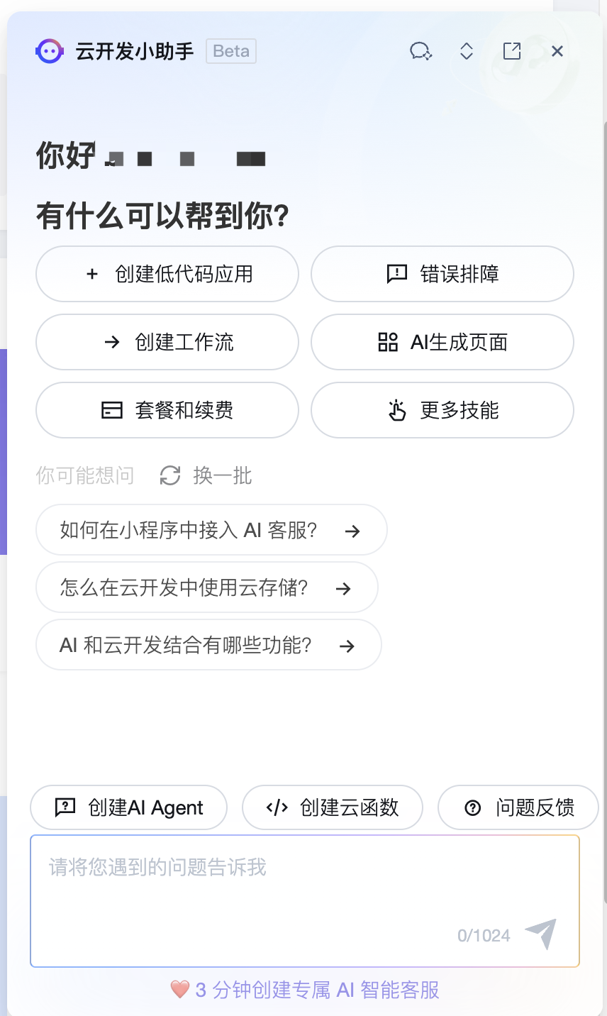 接下来,为了提升你的开发效率和体验,不妨尝试云开发 CoPilot 功能。可以通过以下两种方式之一来使用云开发 CoPilot: