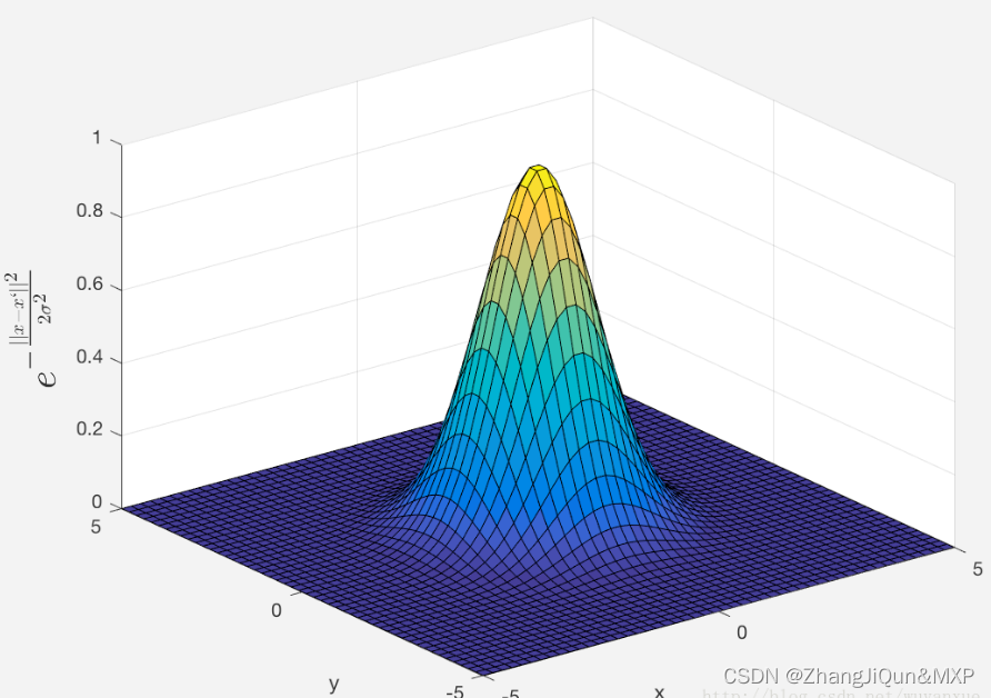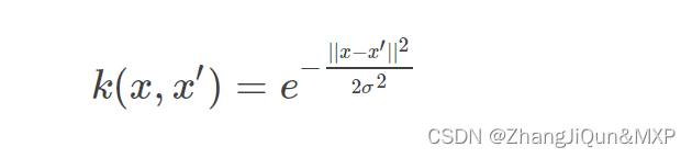 高斯核函数(Gaussian kernel),也称径向基 (RBF) 函数,是常用的一种核函数。它可以将有限维数据映射到高维空间,我们来看一下高斯核函数的定义:
