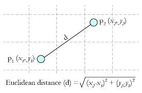 两个点或元组P1=(x1,y1)和P2=(x2,y2)的欧几里得距离是